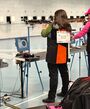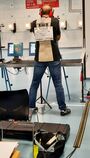 Birgit Nachtigall vom SV Kirchdorf war mit Karin Husmann schon am Samstag angereist, so haben die Beiden am Nachmittag schon die Formalitäten und die Waffenkontrolle erledigt und sich umgeschaut. Birgit hatte zum 1. Mal das Limit in der Seniorinnenklasse II erreicht. Sonntagmorgen um 8 Uhr war es so weit, ihre Serien begannen mit 101,9 - 101,5 und 100,5 insgesamt 303,9 Ringe. Sie war im Vorfeld schon bessere Ergebnisse gewohnt, sie war sicher aufgeregt, zwischen so vielen "alten Hasen" zu stehen. Sie wird sicher im nächsten Jahr das Ganze viel entspannter angehen, sie braucht sich aber nicht zu verkriechen, denn sie hat das Limit geschafft und das erreicht nicht jeder! Wie man auf den Fotos erkennen kann, war sie stolz, an der DM in Dortmund teilnehmen zu können.