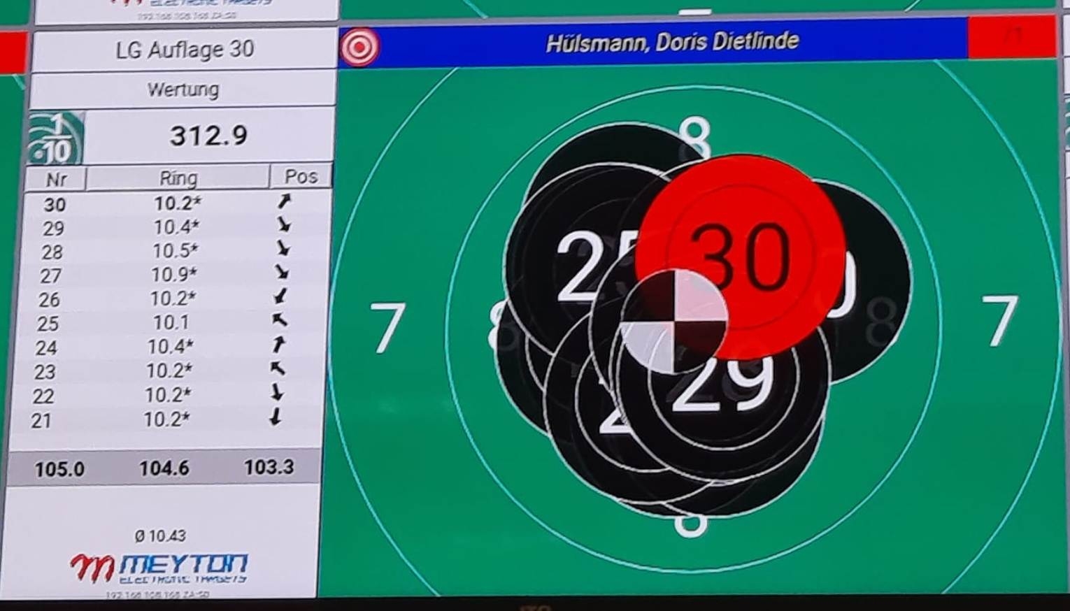 Am Sonntag, den 26. Oktober starteten die Seniorenklassen I und II. Aus unserem Bezirk hatten sich vom SV Rehden Doris Hülsmann (312,9), Klaus Weghöft (311,9) und Thomas Nowak (308,0) mannschaftlich aufgestellt. Mit insgesamt 932,8 Ringen platzierten sie sich auf Rang 79 von 97 Mannschaften. Michaela Helvogt war mit 310,6 Ringen dabei, sicher nicht ganz unzufrieden, 312,9 Ringe hatte sie bei der Landesverbandsmeisterschaft erzielt. Oliver Meyer vom SV Hagewede-Marl war in Begleitung von Uwe Luzniack vor Ort, sein Ziel war es, so viel wie bei der Landesverbandsmeisterschaft zu "treffen". Er war sehr nah dran, 313,4 Ringe waren es, bei der LM hatte er 314,4 Ringe, also fast "punktgenau" er war damit zufrieden!