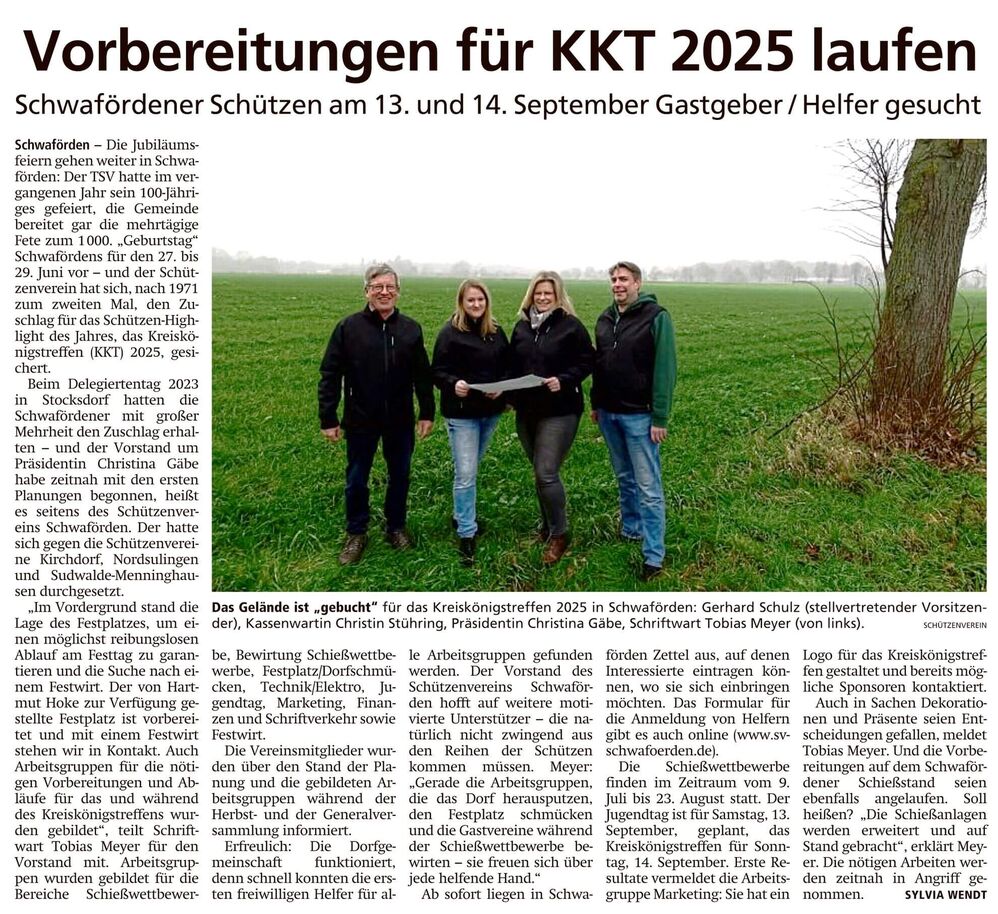 Bericht der SULINGER KREISZEITUNG/SULINGER LAND vom 09. Januar 2025
