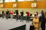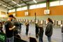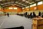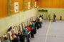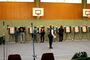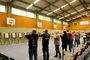 24 Blasrohrschützen im "Anschlag", hinter ihnen die "Vereinstische"...