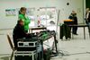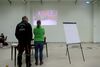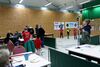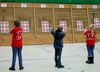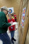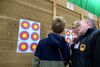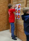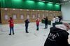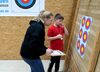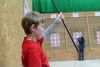 Horst Riedemann leitete die Wettkampfdurchgänge, vor jedem Durchgang erklärte er ausführlich noch ein Mal den Ablauf des Wettkampfes. Die Schüler III hatten die Pfeile aus einer Entfernung von 5 Metern und die Schülerklasse I "pusteten" ihre von der 7 Meterlinie ins Ziel.
