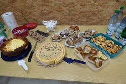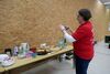 NWDSB-Sportleiter Volker Kächele und stellvertretende Damenleiterin Insa Helms kamen kurz vorbei und sahen den jungen Blasrohrsportlern zu, wie sie ihre Pfeile schon sehr gut platzierten. Der Wettkampf der Schüler wurde per Beamer an die Wand projiziert (eine tolle Idee). Nach dem ersten Durchgang gab es eine kleine Pause. Es stand Kaffee und leckerer Kuchen bereit. Ina Roth und einige Damen hatten für ein gut bestücktes Buffet gesorgt. Kinder und Erwachsene ließen es sich schmecken. Dabei wurde natürlich auch über die Blasrohrausrüstung gefachsimpelt, wie lang oder schwer solch ein Blasrohr sein kann/darf , welche Pfeile wohl die Besten sind usw..