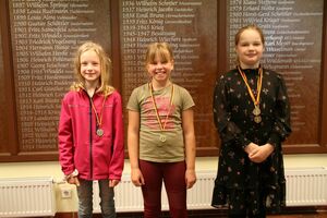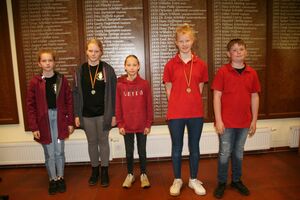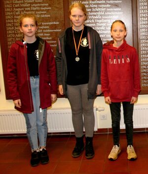 Die Bezirksmeisterschaftsmedaillen wurden von Jugendsprecher Justus Plenge und Jugendsportleiterin Britta Löhmann den glücklichen neuen Bezirksmeistern in GOLD, SILBER und BRONZE unter großem Beifall der Anwesenden, umgehängt. Die Mannschaftsurkunden werden am Bezirksjugendtag übergeben.