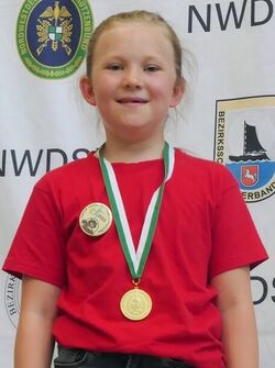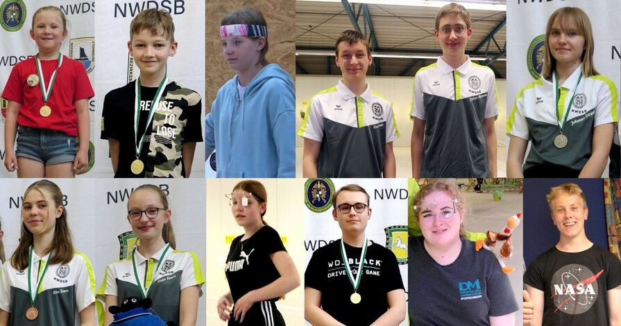 Unsere Einzel-Medaillengewinner sind in diesem Jahr: Kira Evers vom SV Drebber von 1900 Luftgewehr Schülerinnen I 3. von 70 Teilnehmerinnen mit 200,0 Ring. In der gleichen Klasse wurde Johanna Ziegler vom SV Drebber mit LG 3x20 2. von 28 mit 578 Ringen. Ihre Vereinskollegin Finja Kunst platzierte sich in der gleichen Disziplin mit 575 Ringen auf Rang 3 von 28 Teilnehmerinnen! Justus Plenge SV Kirchdorf, schießend für den SV Haendorf 10m Luftpistole (LP) Junioren I wurde mit 345 Ring 1. von 15 Teilnehmern und für den SV Kirchdorf 10m LP Mehrkampf sicherte er sich mit 342 Ringen Platz 2 von 6 Teilnehmern. Fiete Pohl vom SV Rehden, in diesem Jahr für den SV Haendorf schießend, erzielte mit der LP 365 Ringe, mit diesem Ergebnis war ihm Platz 1 sicher von 19 Teilnehmern. Leon Stelloh vom SV Kirchdorf schoss mit dem Luftgewehr (LG) 390,6 Ringe in der Juniorenklasse II und wurde 1. von 27 Teilnehmern. Lena Löhmann Juniorinnen I vom SV Mallinghausen, wurde mit der LP 1. von 5 mit 343 Ring. Lea Carolin Hadeler vom SV Strange-Buchhorst, Jugend LP Mehrkampf platzierte sich mit 345 Ring auf Rang 1 von 3.