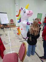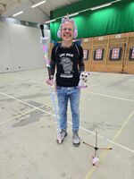 Nach der Siegerehrung für die Schüler fand noch der Einhorn-Cup der Erwachsenen (ein Spaßwettbewerb, der aus einer Idee auf der DM in Einbeck entstanden ist!) statt, zu dem sich die Teilnehmer als Einhörner verkleidet und teilweise auch die Blasrohre sehr schön und glitzernd verziert haben.