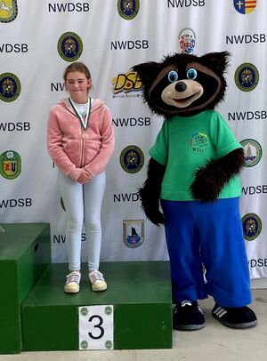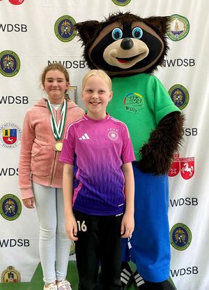 Maskottchen "Willy" freut sich mit den Siegerinnen: Romy Spanagel-SV Klein Lessen, Anna Janssen-SV Holterfehn, Lina Breywich SV Kirchdorf (von links)