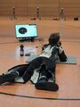 Um 8:00 Uhr war auch Finn Bonkowski vom SV Drebber von 1900 mit dem Lichtgewehr 3 X 10 Schuß angetreten, seine Mutter Meike drückte ihm die Daumen. Schon um 10:30 Uhr war der 2. Start von Finn mit dem Lichtgewehr Freihand, das war schon hart, kaum Zeit zum Luftholen.