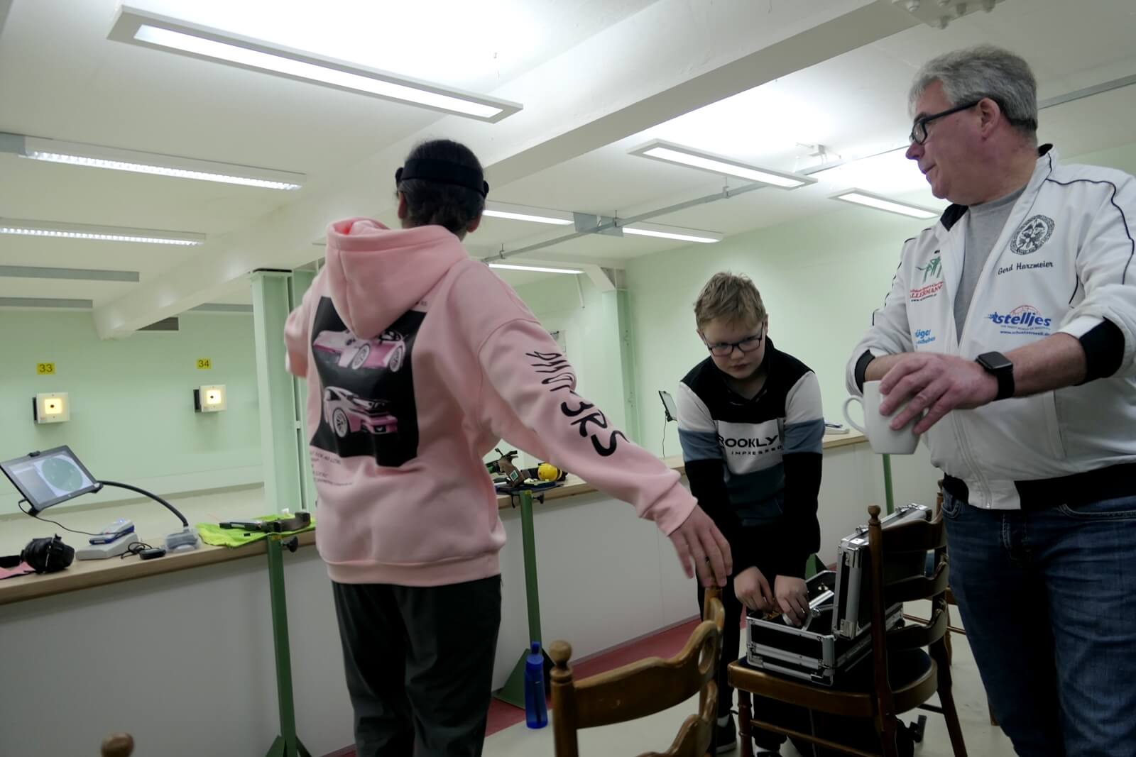 Unserer Luftpistolen-Nachwuchs freut sich mit ihrer kleinen Fangemeinde auf den Wettkampf