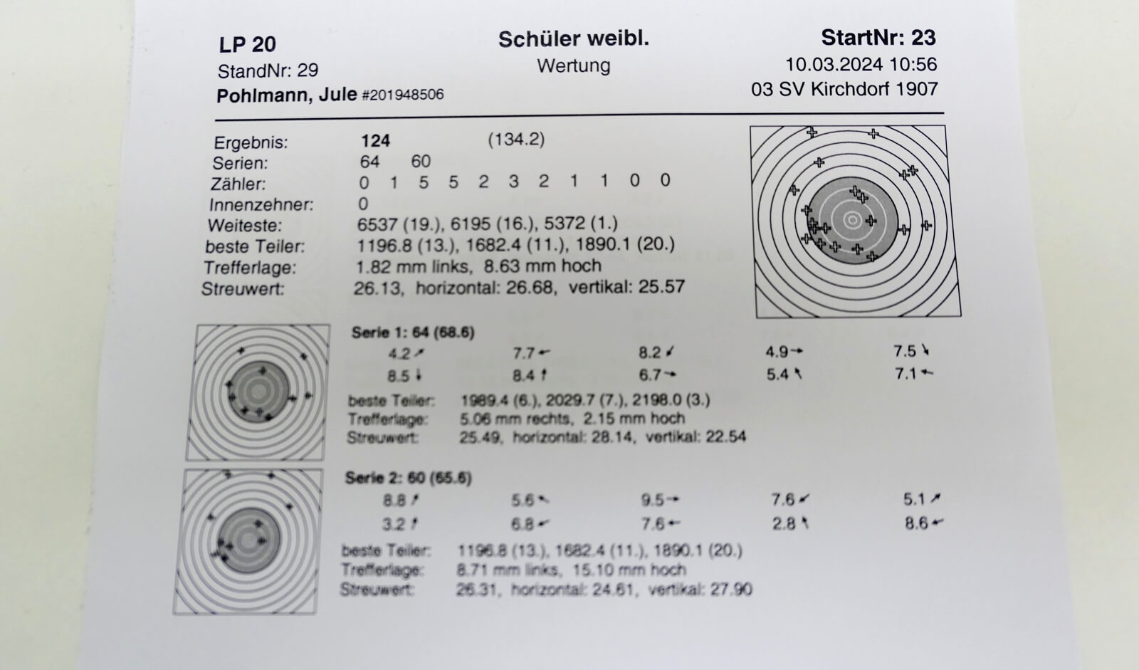Die Beiden waren sehr zufrieden und glücklich. Unsere Kirchdorfer Mädels Ida Nietfeld und Jule Pohlmann hatten insgesamt 263 Ringe, sie brauchten aber nicht traurig sein, denn sie sind ja noch im „Kommen“ und haben dort Erfahrung sammeln können.