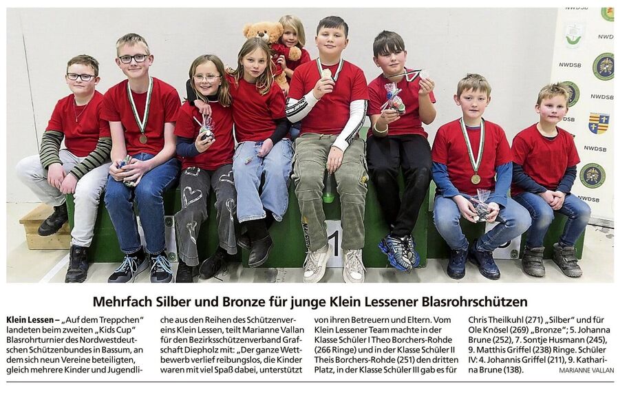 Ztg.-Mehrfach Silber und Bronze für junge Klein Lessener Blasrohrschützen_15.01.2025.pdfDie stolzen glücklichen Teilnehmer/Platzierten des Blasrohrturniers im LLZ vom Schützenverein Klein Lessen