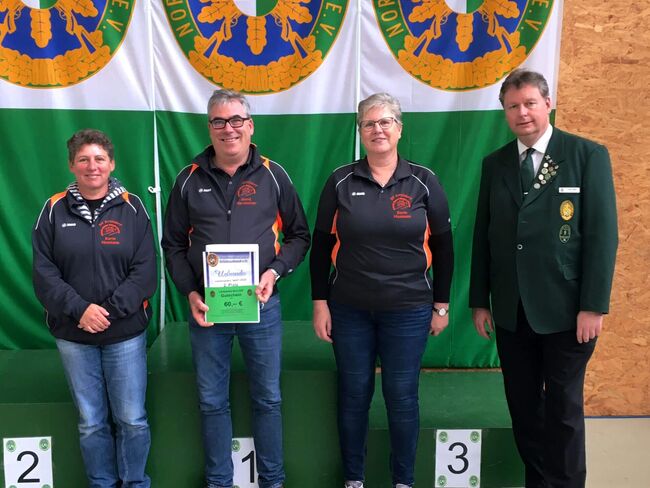 Ztg._Kölling schießt Topergebnis von 199 Ringen_15.10.2020.pdfStolz präsentiert Gerd Harzmeier Urkunde mit Gutschein, Heike Ahlborn und Karin Husmann strahlen mit ihm um die Wette - NWDSB-Präsident Frank Pingel freut sich auch über den gutverlaufenen Wettkampf in dieser "Coronazeit" (auf dem Foto fehlen Lea-Sophie Osterkamp u. Uwe Fangmann)