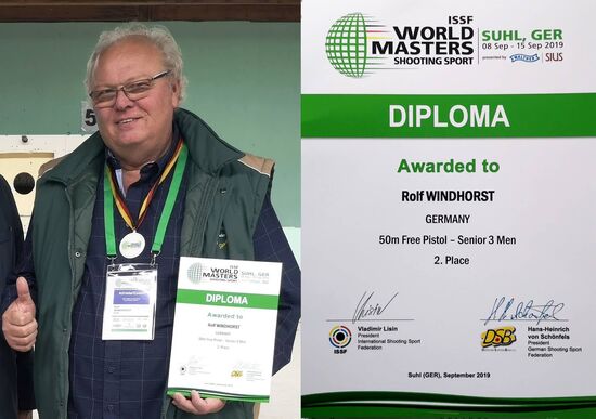 Rolf Windhorst vom SSV Dümmer war beim 1. World Masters im Sportschießen in Suhl 2019 dabei und wurde mit 284.0 Ringen Zweiter in seiner Altersklasse in der Disziplin Freie Pistole Auflage! GLÜCKWUNSCH"!