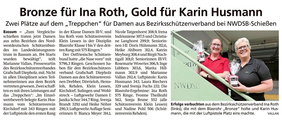 Beim NWDSB-BZ-Damenvergleichsschießen im LLZ Bassum 2 Podiumsplätze belegt