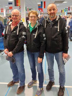 „Die Deutsche Meisterschaft in Dortmund war für uns „Newcomer“ (die Rehdener u. Karin Meyer das erste Mal dabei) eine neue Erfahrung. Es war viel Trubel und somit eine große Geräuschkulisse, kaum Platz zum Stehen, geschweige denn sich anzuziehen für den Wettkampf. Gefüllte Halle mit vielen Schützen/Gästen und dazu mitgebrachten Campingtischen voller Speisen und Getränken, Campingstühle zum Ausruhen zwischendurch. Die Insider wussten schon, dass es vor Ort wenige Sitzplätze gab.