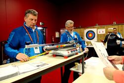 Vor dem Wettkampf standen wie immer die Waffenkontrollen an, nicht nur das Luftgewehr wurde in „Augenschein“ genommen, sondern auch der „Hocker“ von wegen „Sitzhöhe“ (Hocker können Senioren ab Klasse III nutzen). Dazu werden die Startkarten vorgelegt in Verbindung mit Personalausweis und damit die Startnummern abgeholt, welche zum Wettkampf am Rücken des jeweiligen Schützen befestigt werden. Die ersten Starts der Klassen III bis V vom Bezirk Diepholz begannen schon um 8:00 Uhr bis 11:30 Uhr. Inge Lübbers und Marianne Vallan waren, wie im Vorjahr, am letzten Durchgang um 16:10 Uhr die letzten Schützen aus dem Bezirk.