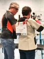 Vor dem Wettkampf standen natürlich Kontrollen an, es wurde das Luftgewehr in „Augenschein“ genommen, dazu werden sie Startkarten in Verbindung mit Personalausweis vorgelegt und die Startnummern abgeholt, welche zum Wettkampf am Rücken des jeweiligen Schützen befestigt werden.