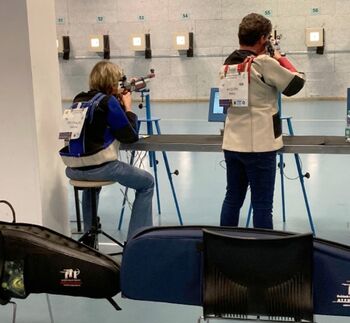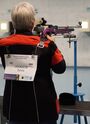 Ja, eine Deutsche Meisterschaft ist schon was anderes, als die heimatliche Landesverbandsmeisterschaft im LLZ Bassum. Es ist schon etwas aufregender sich mit so vielen sehr guten Schützen aus den 20 DSB-Landesverbänden zu messen, jeder möchte ja gern an die Leistungen der Landesverbandsmeisterschaft anknüpfen. Sicher spielt auch die Tagesform eine Rolle, wenn es denn mal nicht so klappt. Sylvia Johnson vom SV Drebber von 1900 hatte leider Probleme mit dem Einlegen der Kugel zum 5. Schuss, er hatte sich "verklemmt", nach dem Lösen und Einführen der neuen Muni, machte es nur "plopp" und der Monitor zeigte unten eine Null an. Sie war natürlich erst mal geschockt, brachte dann ihre folgenden Serien aber noch einiger Maßen zu Ende. 299,0 Ringe waren natürlich nicht ihr Anspruch, da ihre sonstigen Ergebnisse so im Bereich um die 308,8 und 312,6 Ringe liegen.
