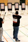 Durch einen zweiten Eingang kam es dieses Jahr zu keinem Stau bei der Waffenkontrolle, außerdem durfte man seine Sportgeräte auch schon einen Tag vorher kontrollieren lassen. Das war vor allem für die Blasrohrschützen gut die morgens schon um 8.15 Uhr auf dem Stand sein mussten. Hotels und Jugendherbergen bieten so früh noch kein Frühstück an so konnte man sich noch schnell beim Bäcker das nötige besorgen.