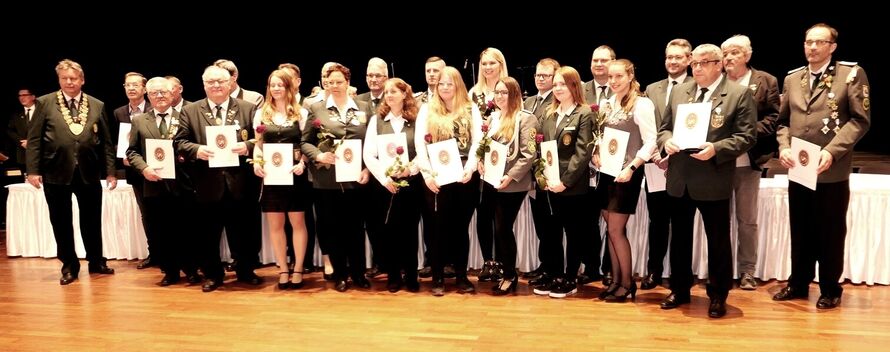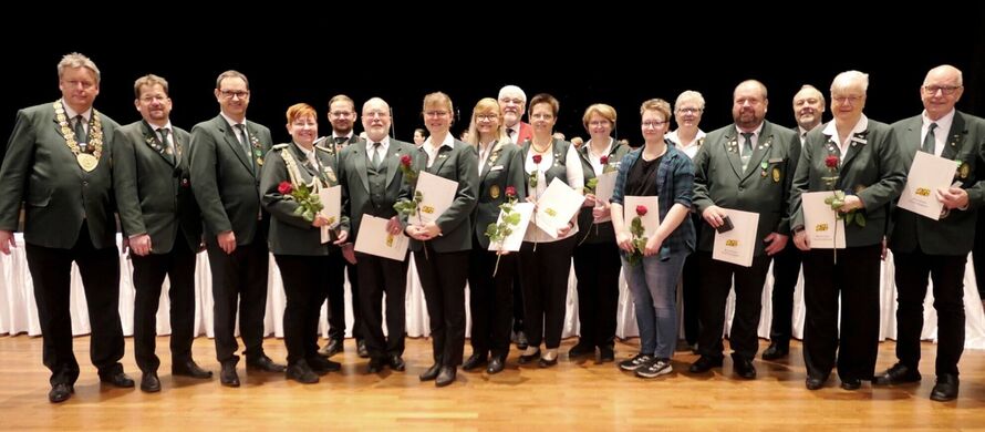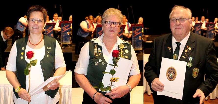 Unsere diesjährigen BZ - Geehrten: Verena Wieling-Schröder vom SV Rehden und Karin Husmann vom SV Kirchdorf erhielten jeweils die Goldene Verdienstnadel des Deutschen Schützenbundes für ihre unermüdliche Arbeit um das Deutsche Schützenwesen verliehen. Karl-Friedrich Scharrelmann erhielt das Ehrenkreuz in Silber vom NWDSB für besondere Verdienste um unser Deutsches Schützenwesen.