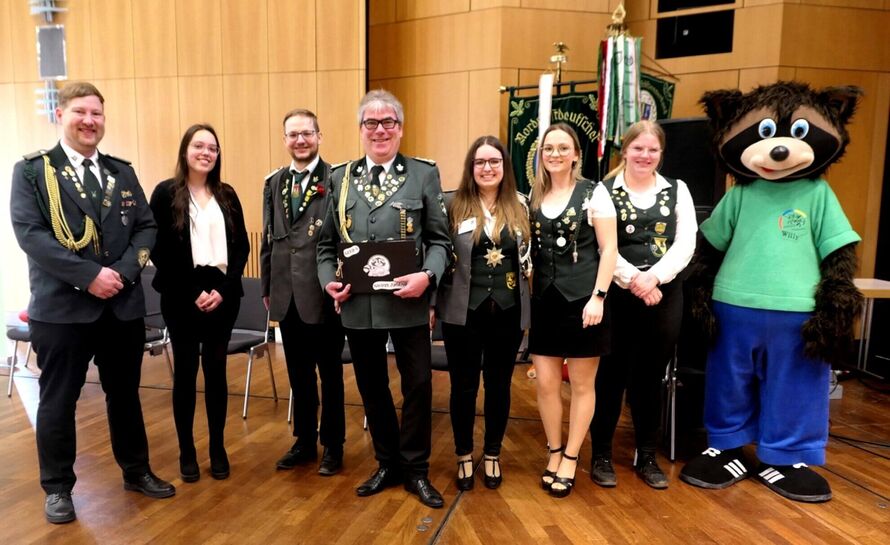 Verabschiedung Gerd Harzmeier aus dem NWDSB-Jugendvorstand (mit Maskottchen "Willy"), auch Torsten Meinking (er konnte krankheitsbedingt nicht vor Ort sein)