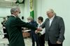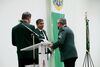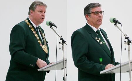 Das Ehrenkreuz in Bronze des NWDSB erhielt Bezirkspräsident Karl-Friedrich Scharrelmann - Präsident des Schützenverbandes Grafschaft Diepholz seit 2004 - von NWDSB-Präsident Frank Pingel verliehen.