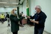 Geehrt wurde für ihr ehrenamtliches Engagement Landesjugendsprecherin Kira Simon mit der Goldenen Verdienstnadel des NWDSB, sie ist seit 2016 stellvertretende Landes Jugendsprecherin und seit 2017 Landesjugendsprecherin. Sie erhielt die Nadel aus den Händen von NWDSB-Jugendleiter Torsten Meinking.