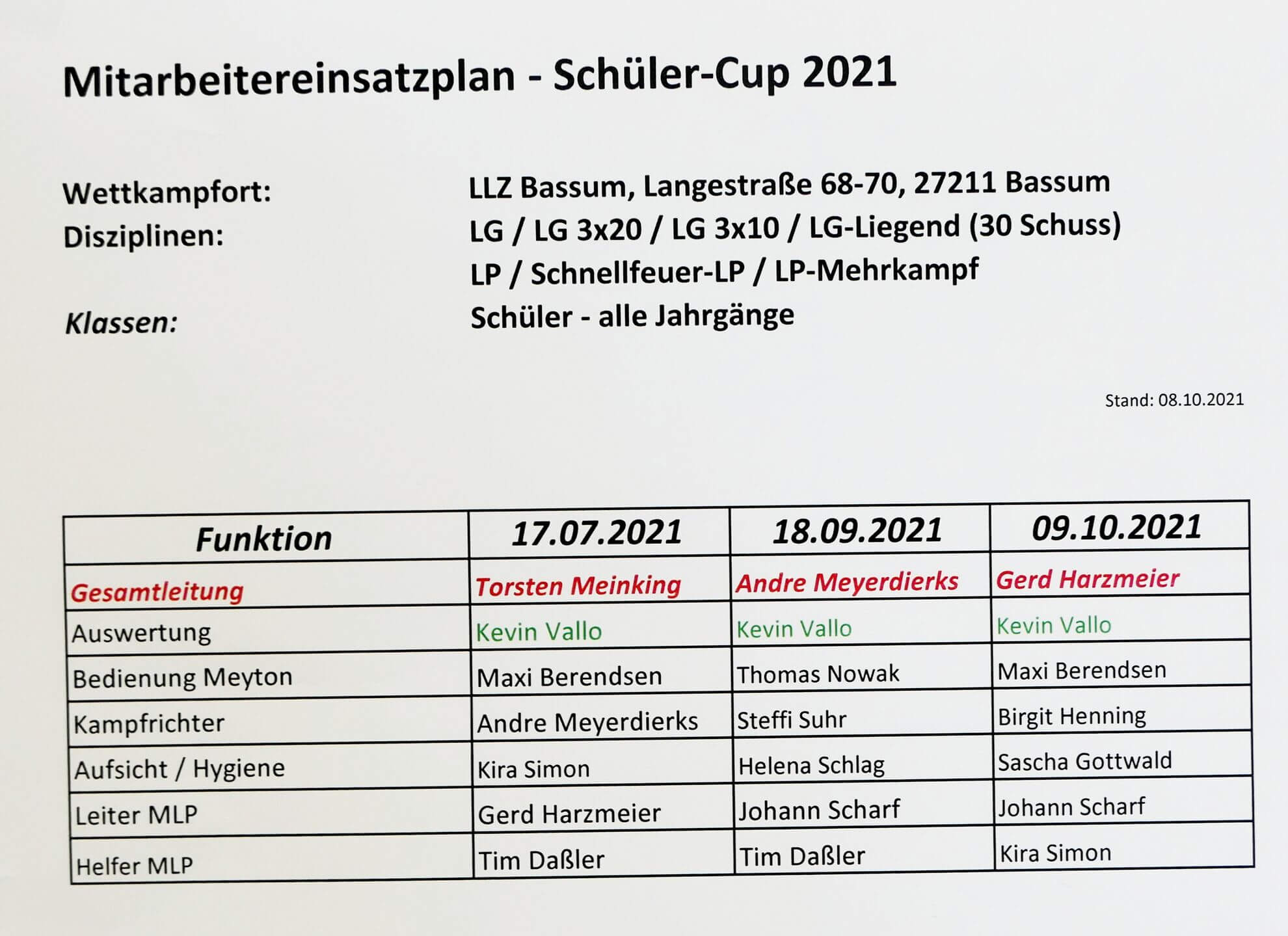 Ergebnisse Schüler Cup 3. Durchgang am 09. Oktober 2021
