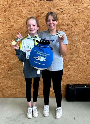 Um kurz nach Zehn hatten sie ihre Starts im Luftgewehr 3 - Stellungstellungskampf. Betreuer/Trainer Jörg Felstehausen unterstützte fachgerecht seine Schützlinge, gute Unterstützung hatte er auch von Finja Kunst. Um es vorwegzunehmen, beide haben ihre Bezirksmeisterschaftsergebnisse toll übertroffen! Jantje kam mit ihren Serien kniend 91 -liegend – 95 und stehend 85 auf sehr gute 271 Ringe (BZ-263 R.), diese brachten ihr die Goldmedaille! Auch Maja übertraf ihr BZ-Ergebnis von 253 Ringen, ihre Serien waren kniend 95 – liegend 92 und stehend 82 also 268 Ringe, Silber war ihr Lohn! Insgesamt haben 11 Schülerinnen II an diesem Wettkampf teilgenommen. Am Nachmittag hatten Jantje und Maya noch ihren Luftgewehrstart, dort haben sie nicht ganz so gut ihren Stand gefunden, ihre Ergebnisse haben sich aber gegenüber 2023 stark verbessert. Jantje kam auf gute 177,1 Ringe und Maya folgte ihr mit 167,6 Ringen, 27 Teilnehmerinnen gaben dort ihr Bestes.