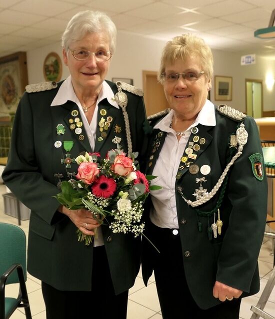 Marlies Immoor-Koopmann erhielt von Bärbel Rohlwing als Dank einen Blumenstrauß für ihre Arbeit als Sportleiterin rund um den Schießsport im Jahr 2023.