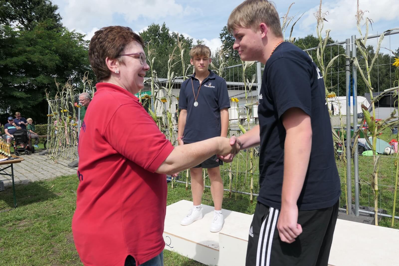 Nach dem gemeinsamen Mittagessen wurde die Siegerehrung von dem eingespielten Team Gerd Griffel, Marion Schur und Bernd Dammeier durchgeführt. Stellvertretender Jugendleiter Rainer Gaumann hatte in seinem "Homeoffice" die Siegerehrungsliste fertiggestellt. Vor der Siegerehrung bedankte sich Kreisverbandspräsident Gerd Griffel bei allen Teilnehmern für ihr gutes Verhalten an allen Tagen, es habe auch ihm viel Spaß gemacht, und er freue sich schon auf das nächste Jugendzeltlager. Der Veranstaltungsort /Verein wird am Kreisdelegiertentag am 15. September bekanntgegeben. Vom gastgebenden Verein BSV Ströhen, dankte auch Präsident Gerald Hilgemeier allen Helfern für die gute Organisation, nicht nur aus seinem Verein, denn ohne ihr Engagement würde vieles nicht "laufen". Mit viel Beifall der Anwesenden wurden die aufgerufenen Sieger bedacht, diese freuten sich sehr über die Medaillen und Pokale.