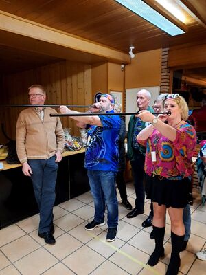 Während des Abends gab es die Möglichkeit für alle Interessierten zum Testen der neuen Sportart im Deutschen Schützenbund, das Blasrohrsschießen. Die Disziplin wurde von Cord Borchers-Rode, dem stellv. Sportleiter des Bezirks-Schützenverbandes Grafschaft Diepholz vorgestellt. 50 Interessierte probierten es so gleich aus und nahmen auch sofort an einem Preisschießen teil. Präsentkörbe gab es für Henrik Grote, Angela und Klaus Weghöft, Christiane Kenneweg, Stefan Soppa und Verena Wieling-Schröder