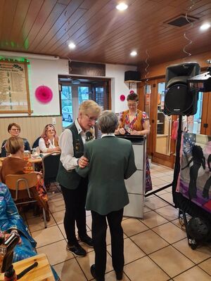 Und weil wir der Meinung sind, dass 50 Jahre Mitgliedschaft und aktive Teilnahme am Schützenverein Rehden schon etwas ganz Besonderes sind, möchten wir euch im Namen der gesamten Damenschießgruppe einen kleinen Blumenstrauß überreichen und uns damit für die vielen Stunden, die ihr für die Truppe aufgebracht habt, die ihr euch engagiert und mitgemacht habt, bzw. im Falle von Annemarie und Anneliese ja auch immer noch macht, bedanken. Macht weiter so und vor allem, bleibt gesund und munter! Und Anneliese und Annemarie, ihr beiden wisst ja, ohne Euch zwei sind wir irgendwie nicht komplett, ein Schießen ohne euch ist nur halb so schön. Und ein Taxi für euch steht immer bereit! Bleibt uns bitte noch lange treu, so dass wir noch viele schöne gemeinsame Stunden verbringen können.