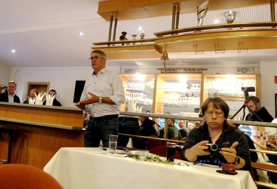Besonders begrüßte er alle anwesenden Majestäten. Es waren laut Teilnehmerliste 37 Vereine mit ihren Delegierten anwesend. Zu Beginn gab es vom SK eine Runde „Feuerwasser“. Seine Entschuldigung für aufgetretene Fehler während des Kreiskönigstreffen, wurde angenommen. Positiv war das ganze "Drumherum", bestes Wetter mit Sitzgelegenheiten im Freien, für alle gute Verpflegung....