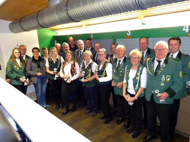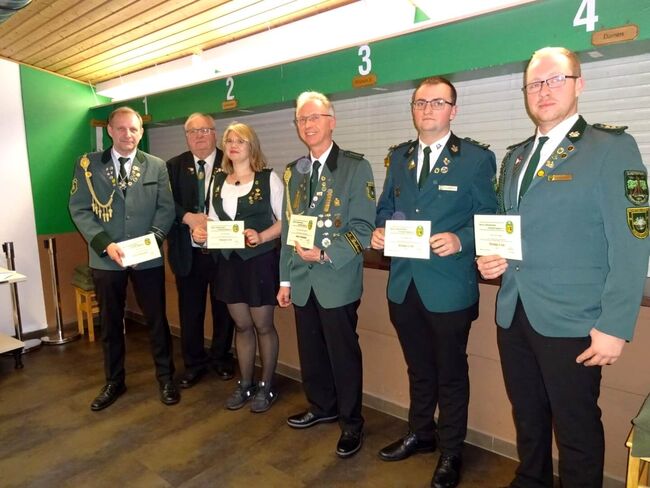 Die Ehren- und Verdienstnadeln, Meisterschützenabzeichen u.ä. der diversen Ehrungen wurden nachträglich von Bezirkspräsident Karl-Friedrich Scharrelmann und Sebasian Lampe vorgenommen