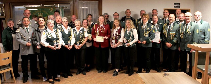 Die Siegerehrung Kreismeisterschaft 2023 mit der Ausgabe der Pokale wurden von Andreas Pohl, Michael Meyer, Niklas Bollhorst und Sigrid Klöcker durchgeführt. Die zahlreichen Ehren- und Verdienstnadeln, Meisterschützenabzeichen und Vergabe von diversen Ehrungen, wurden von Bezirkspräsident Karl-Friedrich Scharrelmann, Friedrich Kelkenberg und Andreas Pohl verliehen. Eine besondere Ehrung vom Landessportbund erhielt Niklas Bollhorst von Friedel Kelkenberg für seine jahrelange Jugendarbeit im SV Rehden.