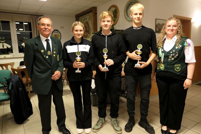 KV III – Jugendverbandskönig 2024 wurde mit 94 Ringen (5x10) Jayden Diephaus vom SV Ehrenburg, 2. Marian Becke vom SV Mallinghausen, ebenfalls mit 94 Ringen (4x10) und 3. Philipp Schlichte vom SV Schwaförden mit 90 Ringen.