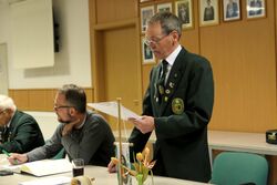 Präsident Dieter Lüdeke bedankte sich für die Teilnahme, gratulierte nochmals allen Geehrten und Würdenträger/innen. Für die anstehenden Schützenfestsaison wünschte er allen Vereinen eine Monarchie, bleibt alle gesund und kommt gut nach Haus. und schloss die Versammlung mit einem dreifachen "Gut Schuß".