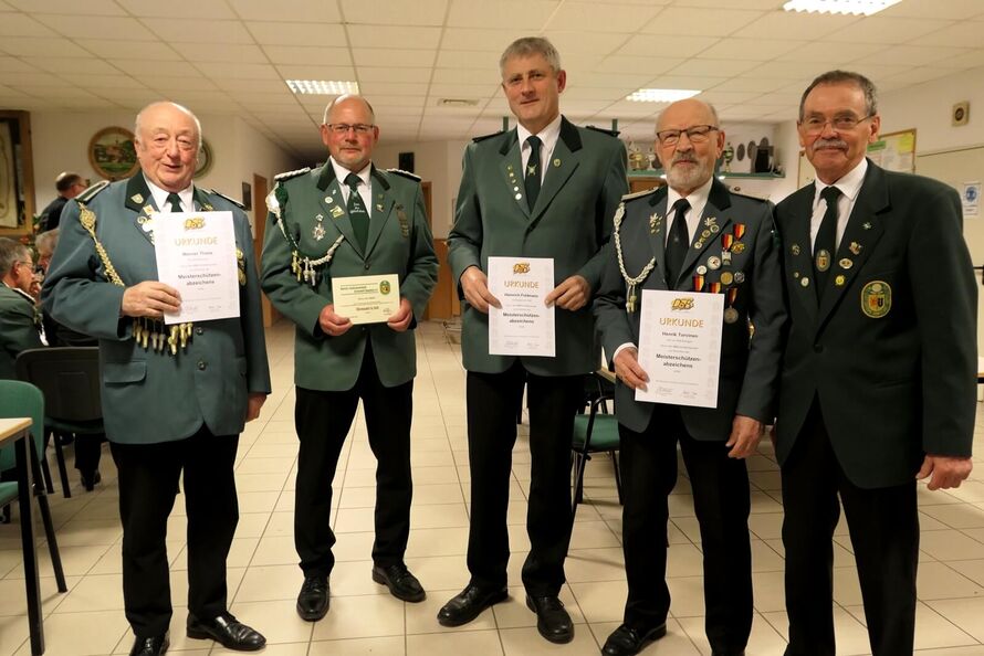 Nachträglich erhielten Werner Thiele vom SV Mallinghausen das Meisterschützenabzeichen, Jens Müller vom SV von 1848 Sulingen die Goldene Ehrennadel des Bezirks, Heinrich Feldmann (SV Drebber von 1900) und Henrik Torvinen vom SV von 1848 Sulingen das Meisterschützenabzeichen von Präsident Dieter Lüdeke verliehen..