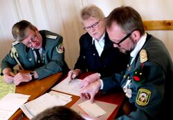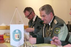 Präsident Dieter Lüdeke bedankte sich für die Teilnahme, gratulierte nochmals allen Geehrten und Würdenträger/innen. Für die anstehenden Schützenfestsaison wünschte er allen Vereinen eine Monarchie, bleibt alle gesund und kommt gut nach Haus. und schloss die Versammlung mit einem dreifachen "Gut Schuß".