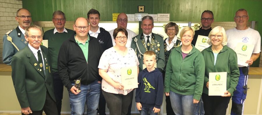 Das Pokalschießen der Damen ging an: 1. SV Ehrenburg 147 Ring; 2. SV von 1848 Sulingen 146; 3. SV Mallinghausen 144. Tagesbeste wurde Hella Denker vom SV Ehrenburg mit 50 / 51,0 Ringen Die Reihenfolge der Herrenpokale: 1. SV von 1848 Sulingen 146 Ring; 2. SG von 1896 Sulingen 144; 3. SV Mallinghausen 144. Tagesbester wurde Carsten Lüllmann von der SG von 1896 Sulingen mit 50 / 52,5 Ringen.