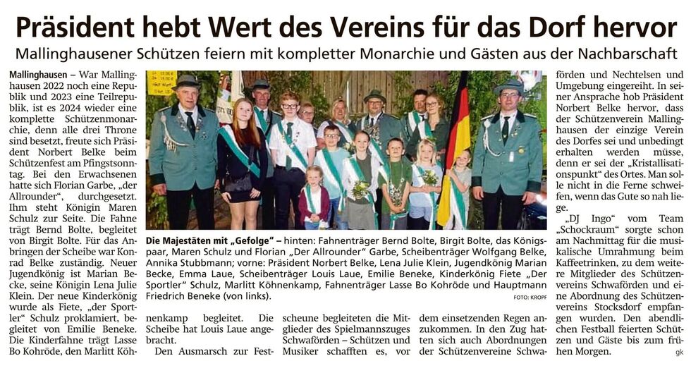 Schützenfest 2024 in Mallinghausen mit kompletter Monarchie