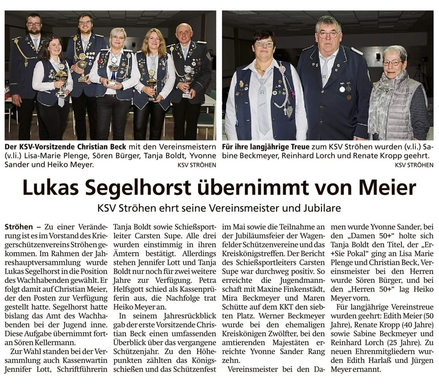 KSV Ströhen Generalversammlung - Lukas Segelhorst übernimmt von Meier