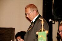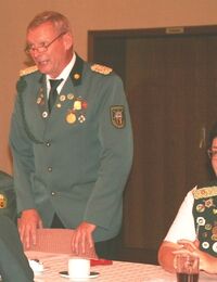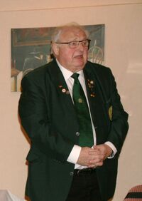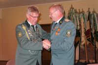 Präsident Karl-Friedrich Scharrelmann überbrachte die besten Grüße des Bezirks-Schützenverbandes Grafschaft Diepholz. Er schloß sich gern den Vorrednern an, sie haben gesagt, was zu sagen war. Eines möchte er noch hinzufügen, wenn wir unsere grüne Schützenuniform anhaben, sind wir politisch neutral – grundsätzlich machen wir in Uniform keine Politik, dieses sollte auch so bleiben.