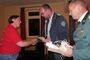 Es folgten die Ehrungen von Landes- und Deutscher Meisterschafts-Teilnehmer, dies waren die anwesenden Karl-Heinz Ullmann für die Disziplin Vorderlader, sowie Ina Roth und Cord Borchers-Rohde für die Disziplin „Blasrohr“. Sie erhielten als Anerkennung einen guten „Tropfen“.