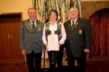 Auch erfolgten noch Ehrungen für die Schützen und Schützinnen, welche die Ehrung beim Bezirksdelegiertentag nicht persönlich entgegen nehmen konnten. Diese überreichte ihnen Bezirkspräsident Karl-Friedrich Scharrelmann. Die verschiedenen Nadeln mit Urkunden erhielten von ihm Andre Gödeker und Daniel Brokate (Goldene Ehrennadel des Bezirks). Die Silberne Verdienstnadel erhielt Hendrik Nietfeld und die Goldene Verdienstnadel des Bezirks erhielt Heidi Mohrlüder. Anette Maschke vom SV Varrel, erhielt für ihre ehrenamtliche Tätigkeit im SV Varrel die Goldene Verdienstnadel des NWDSB mit Urkunde verliehen.