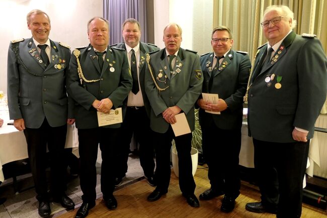 Nachträglich geehrt wurden von Bezirkspräsident Karl-Friedrich Scharrelmann mit der Goldenen Ehrennadel des Bezirks Diepholz Steve Schomburg, Ralf Renzelmann, Lars Witte, Siegfried Kopitz und Carsten Bogdan.