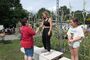 Anschließend unternahm man einen kleinen Rundgang an den Zelten vorbei (welche zum Teil schon abgebaut wurden) und probierte das Lichtschießen im "Lokschuppen" aus.