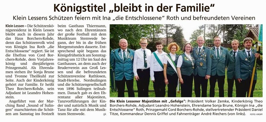 SV Klein Lessen: Königstitel „bleibt in der Familie“