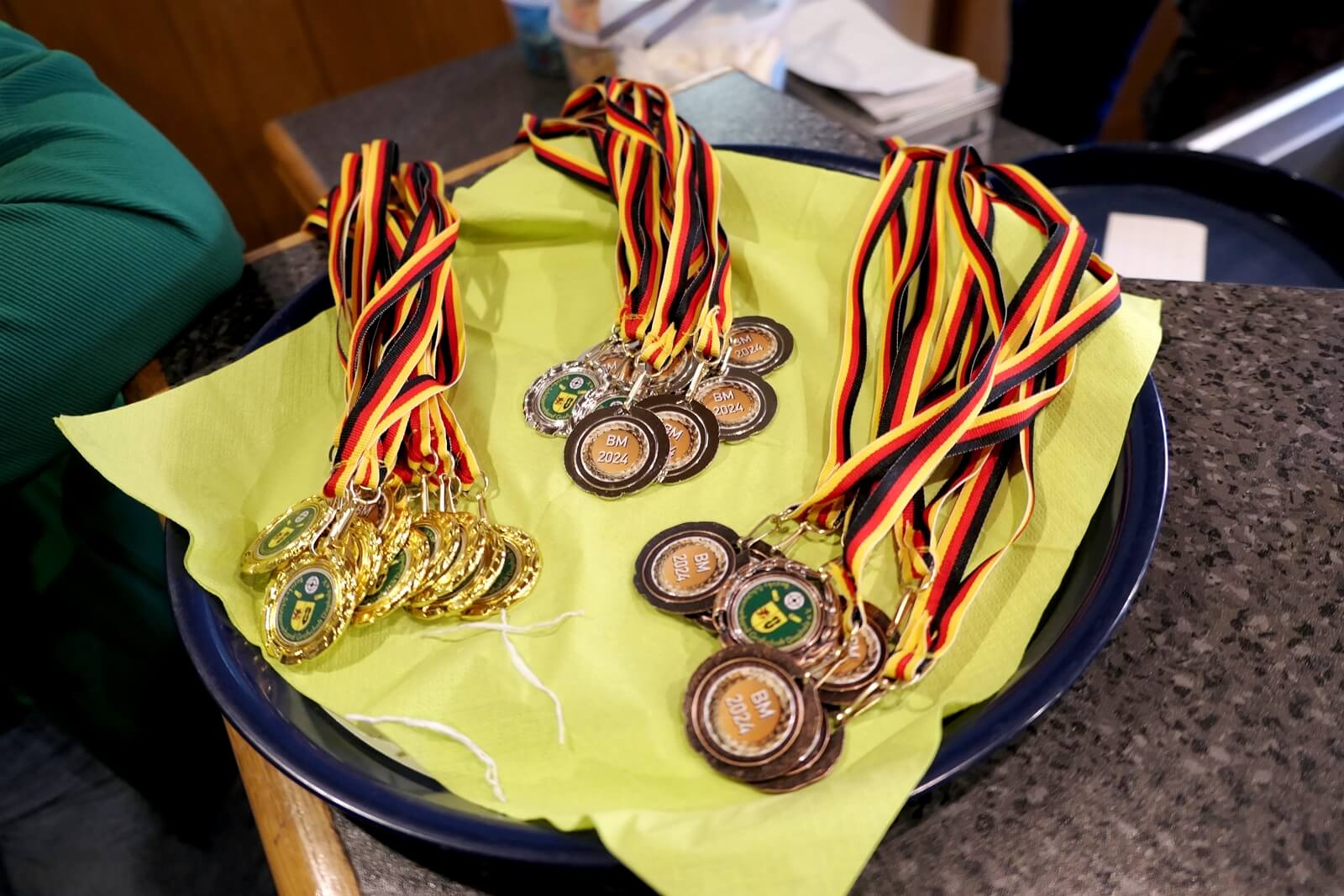 Die Bezirksmeisterschaftsmedaillen wurden von Britta Löhmann, Vanessa Rothe und Tim Daßler den glücklichen neuen Bezirksmeistern in GOLD, SILBER und BRONZE unter großem Beifall der Anwesenden, umgehängt. Die Mannschaftsurkunden Lichtgewehr und Lichtpistole werden am Bezirksjugendtag übergeben.