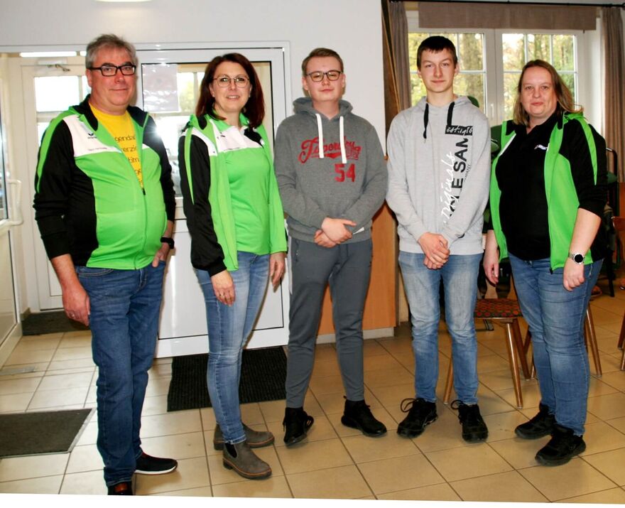 Nach der Wahl der BZ-Jugendsprecher, ein Bild mit den beiden Jugendsprechern Justus Plenge vom SV Kirchdorf u. sein neuer Stellvertreter Fiete Pohl vom SV Rehden mit Gerd Harzmeier, Anja Klanke-Luzniack u. Britta Löhmann. (von links)